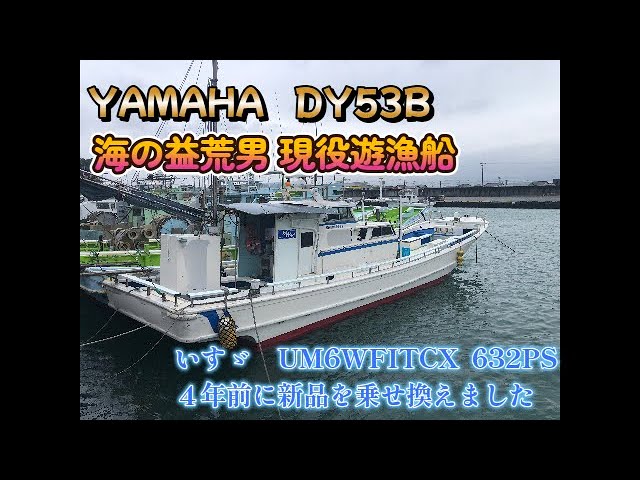 ヤマハDY53B、現役遊漁船です。エンジンが自慢4年前に新品換装されてます。メンテナンスもしっかりされてて、質のいい船です。油圧のスラスターで狭い場所でも操船が楽です。