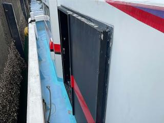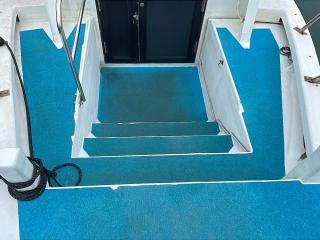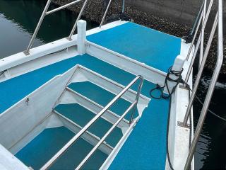 フロントデッキの生け簀を工夫してつくった階段から客室にアクセスします。