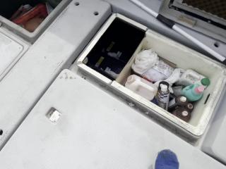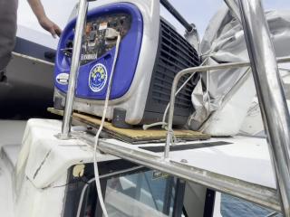 フライングブリッジには2kwの発電機が置いてありました。(エアコン用)普段はしっかりシートで覆ってあります。
