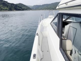 フライングブリッジとは別に2ステーションとトローリング、コクピット合わせれば3か所で操船できる神仕様! おまけにバウスラスター付きです。私も操作しましたが離岸接岸の際に物凄く重宝しました! エンジンもしっかりメンテされており、回航前にもマリン業者に整備して頂けるそうです。かなりお買い得な一艇となってます。正真正銘早い者勝ちです。
