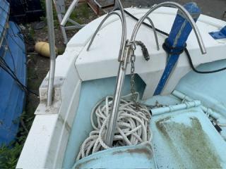 気になるところは右舷側の穴。補修が必要ですが、そこまで大きな費用はかからないと思われます。また、器用な方であれば、ご自身で補修可能と思われます。デッキはしっかりしています。掃除すればきれいになると思います。