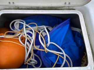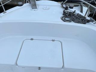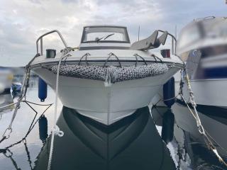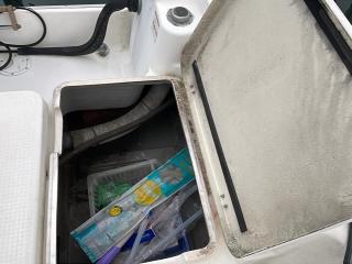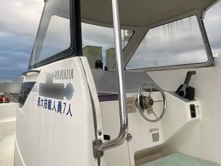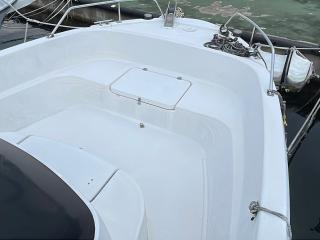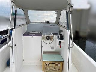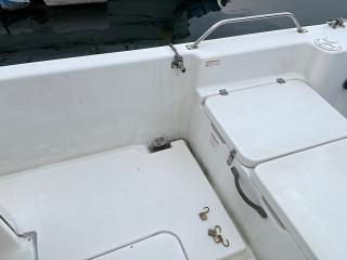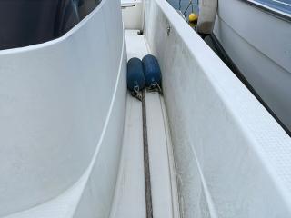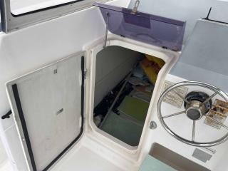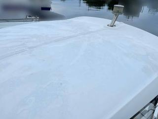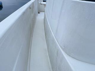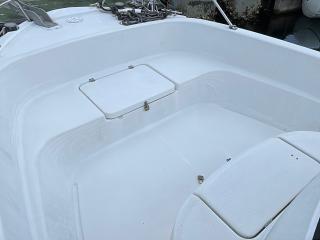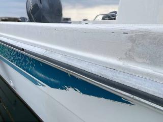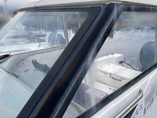 ガンネルゴムの切れ、FRP表面のヘアークラックなどは年式相応にあります。刷毛塗り跡が一部にあります。