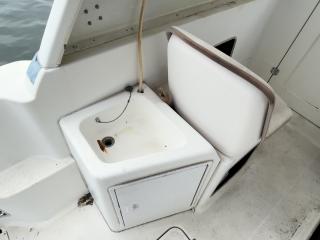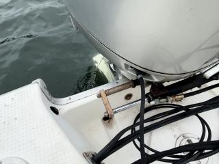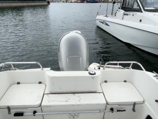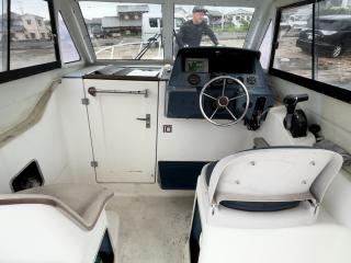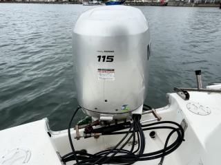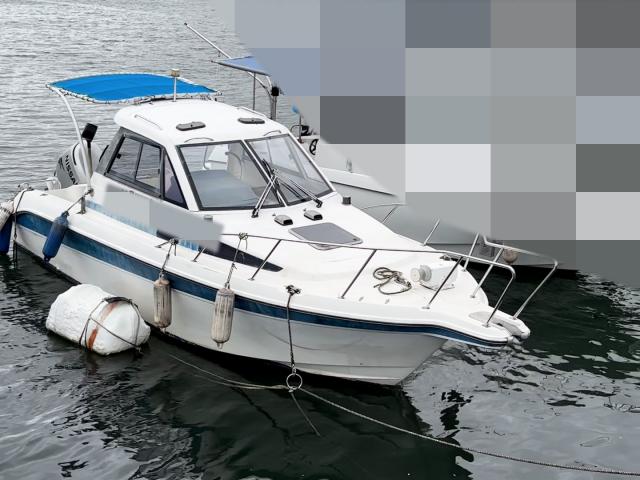 115馬力の船外機でマリントイレ付き。愛媛県中央部での係留引き継ぎ可能です。