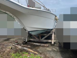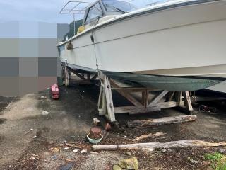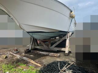 陸揚げされて3年経つそうです。船検も切れてますし現状売りになります。 船体のぶわつき等はありませんでしたが汚れてます。動作未確認なので完全にレストアベース前提で購入される方のみのご案内となります。