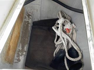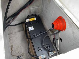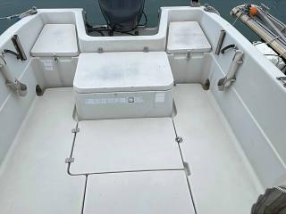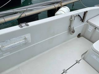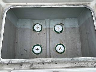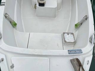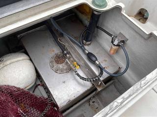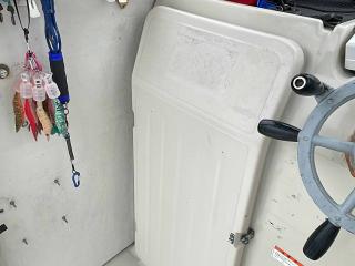 広い生け簀が欲しかったので、もともと物入だった所にスカッパーを4つ付けて生け簀に変更されてます。元々の生け簀はスカッパーをFRPで塞いで物入にされています。
