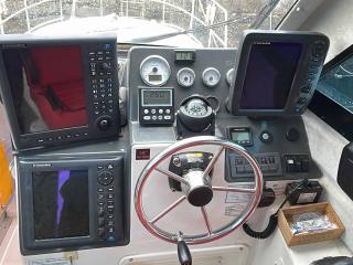 オートパイロット、レーダー、GPS、魚探などプロ仕様の装備をそろえてます。