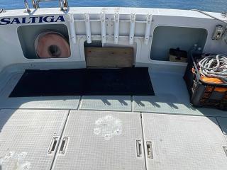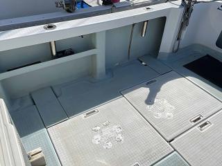 サイドデッキの幅も広く、ここでの竿出しもできます。高さもありますからハンドレールも必要ない高さです。