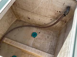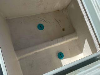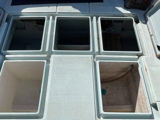 大型生け簀は2室、スカッパーを開けてポンプで海水を循環できるようにしてます。