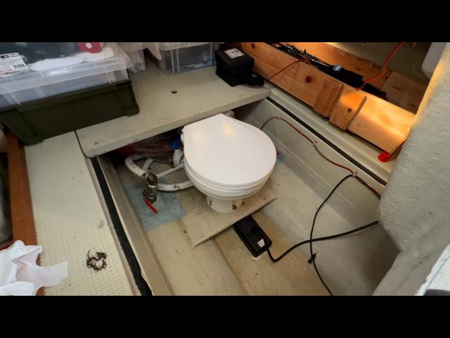 キャビン内には電動式のマリントイレも完備でファミリーフィッシングにもおすすめ。