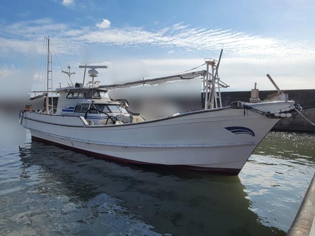 1988年12月進水.ヤマハDY39です。オ-ナ-様は月に2.3回.アジ曾根.牛深沖.甑島などに大型魚を求めて、趣味程度では有りますが遊漁船業にこの船を使用されていましたが、2年前に遊漁船業はお辞めになり現在は近場の釣りを楽しんでおられます。現在所有船が3隻ある為、使用頻度が極端に減ったこの船を手放す事になりました。