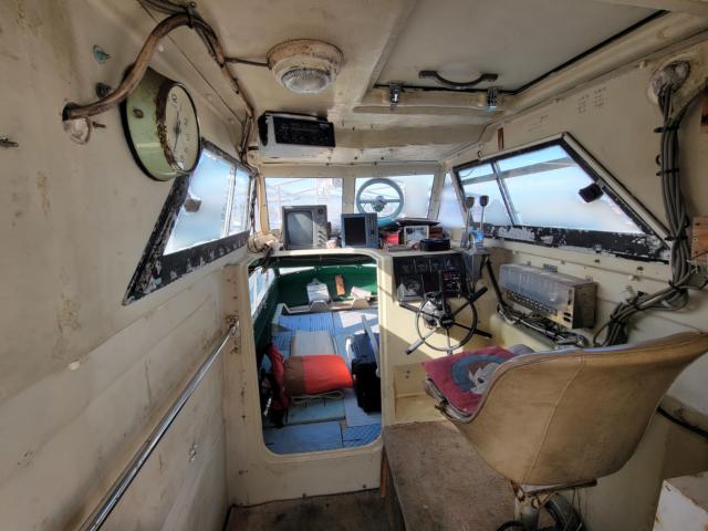 ブリッジは新船時に天草ヤマハ工場で30cm延長されたロングブリッジになっています。また20年位前にブリッジサイドの波除け、ガンネルサイドのステンレスレ-ルを200万円で装備したそうです。ブリッジ両サイドの窓サッシは外からシリコンで塞いでありますので開きません。FURUNOレ-ダ-は免許登録使用中ですから名義変更すれば継続使用できます。